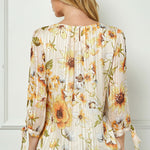 3/4 Tie Sleeve Pleat Neck Bubble Blouse in Yellow Pansy
