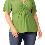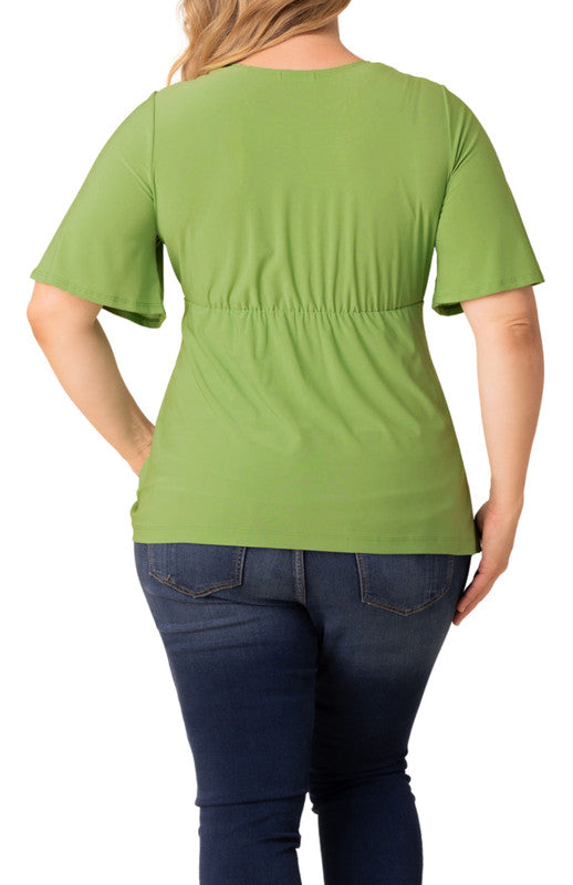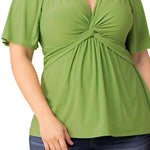 The Abby Twist Top is a classic, seasonless silhouette. Made exclusively in women's plus sizes, this top features Intentional detailing such as a flattering v-neckline, twist detail, and feminine flutter sleeves. This sophisticated knit top is perfect for the office or a night out.