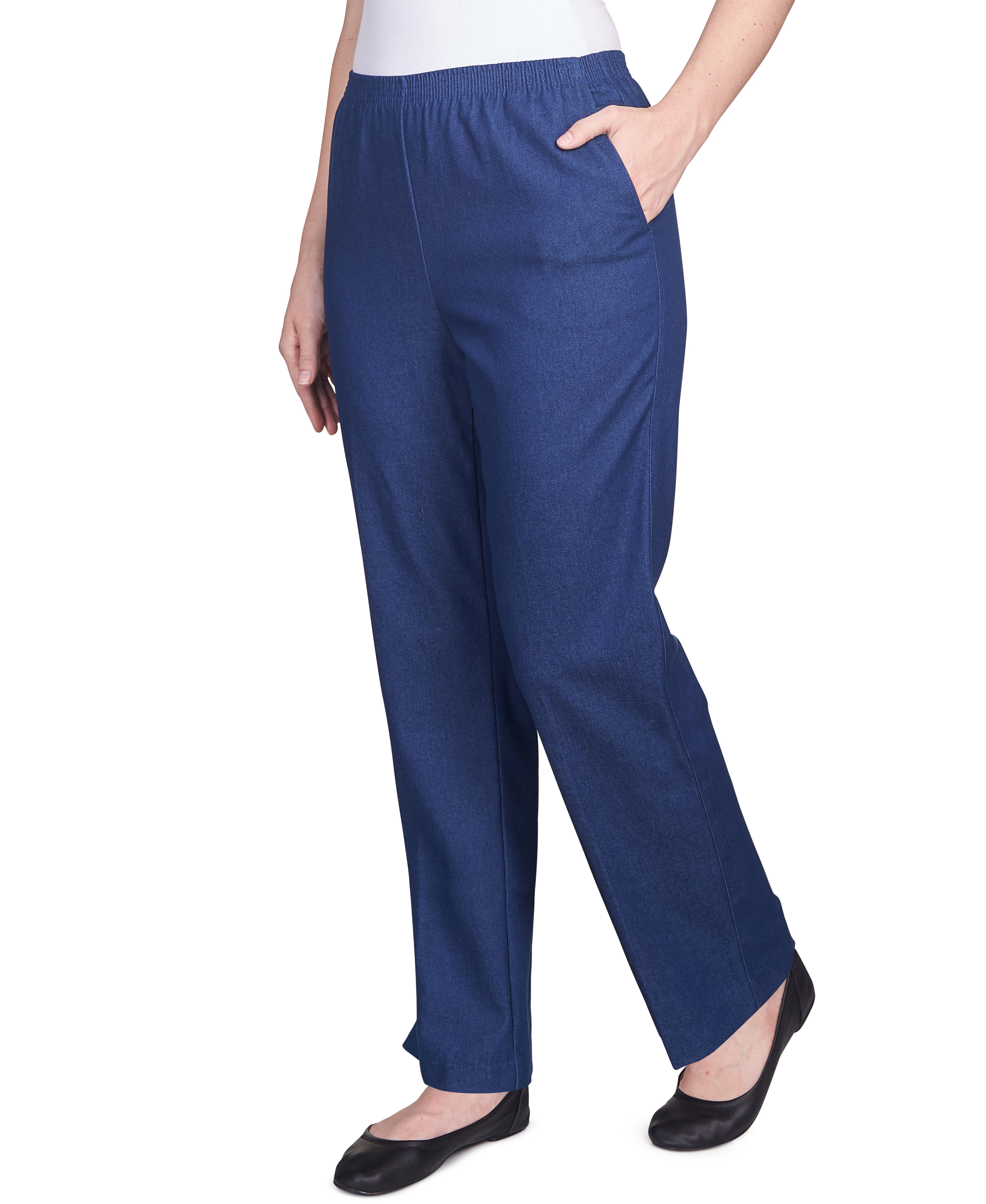 Alfred Dunner Classic All-Around Elastic Waistband Denim Pant Average Length