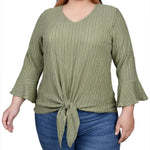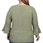Avocado 3/4 Bell Sleeve Textured Knit Top - Plus