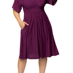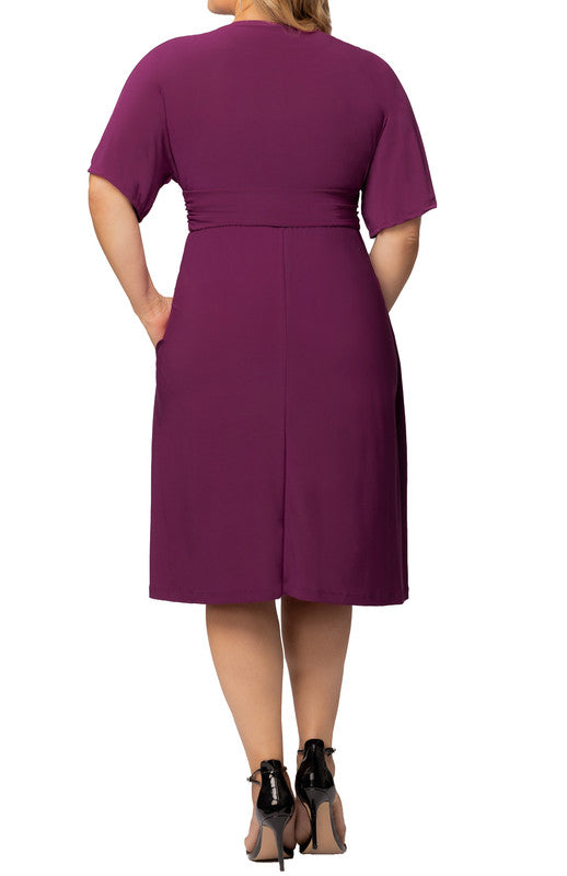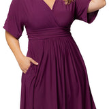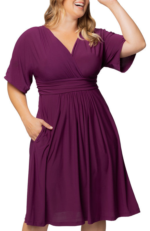 You'll feel beautiful in our plus size Gia Midi Dress. This flattering stretch jersey A-line dress is designed with a surplice bodice, short dolman sleeves, and pockets. Available in women's plus sizes.