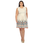 Beige Border Print Fit and Flare Knee Length Dress - Plus
