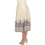 Whether you're dressing up for a day at the office or enjoying a casual outing with friends, our Women's Pleated Skirt is the perfect choice for effortless style and comfort. Indulge in the timeless allure of border prints, delicately adorning the hem of the skirt with intricate patterns and vibrant colors. This Midi Skirt features functional side pockets, full elastic waistband and a subtle reverse arc hem that adds a twist to this classic design.