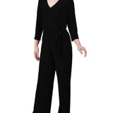 Black 3/4 Sleeve Belted Jumpsuit - Petite Short – Dressbarn