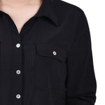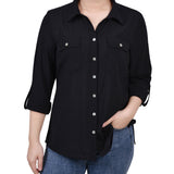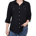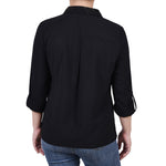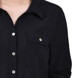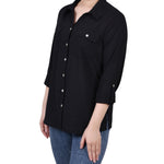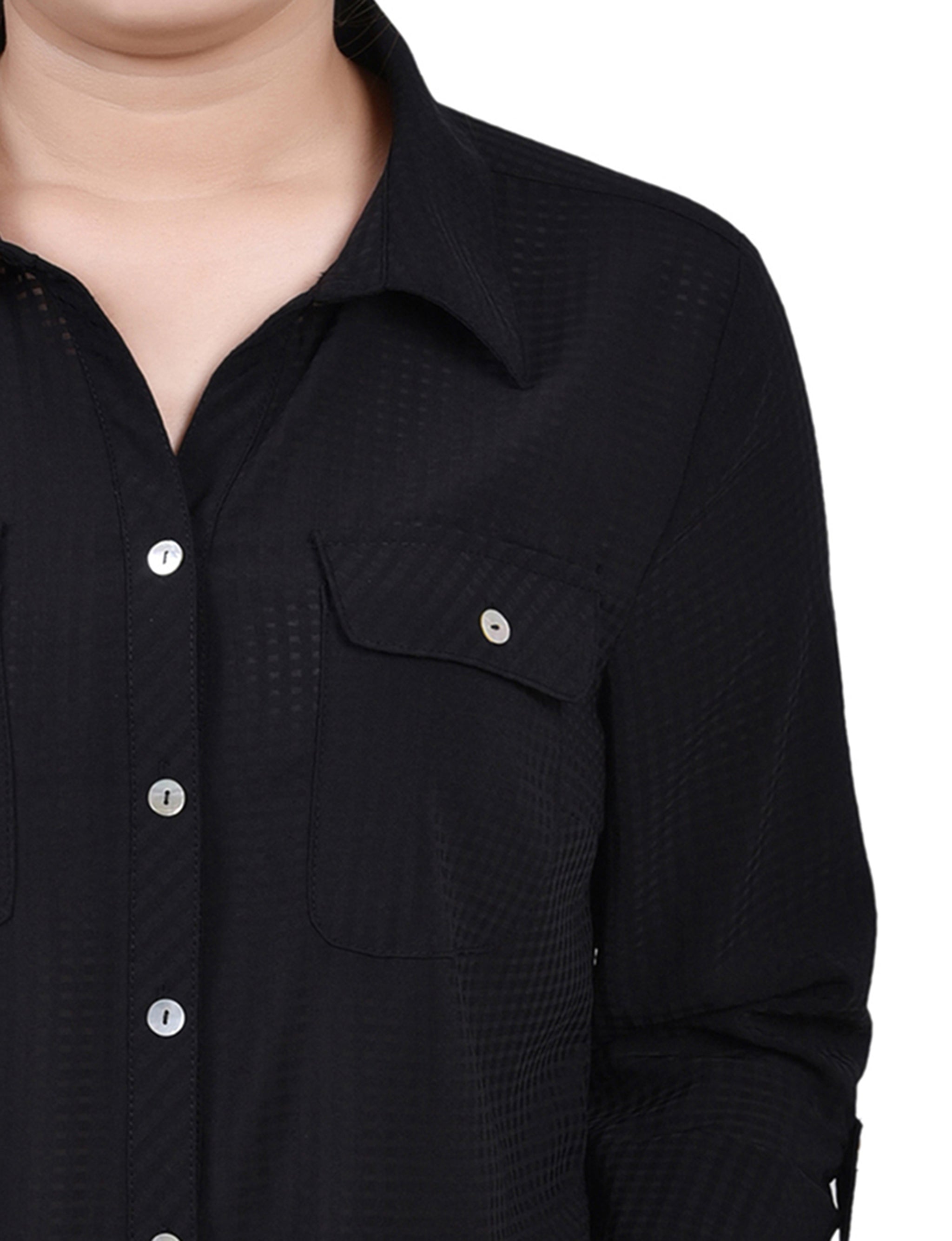 Classic styling updated with it's windowpane fabric. Roll tab sleeves makes this a versatile blouse to take you through the seasons.