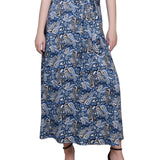 Black Blue Paisley Maxi Skirt With Sash Waist Tie - Petite