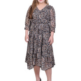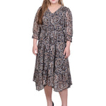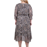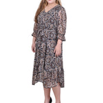 Welcome the warmer weather with femininity and style with this softly printed dress. Balloon sleeves and wide flounced hem add to the soft styling.