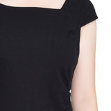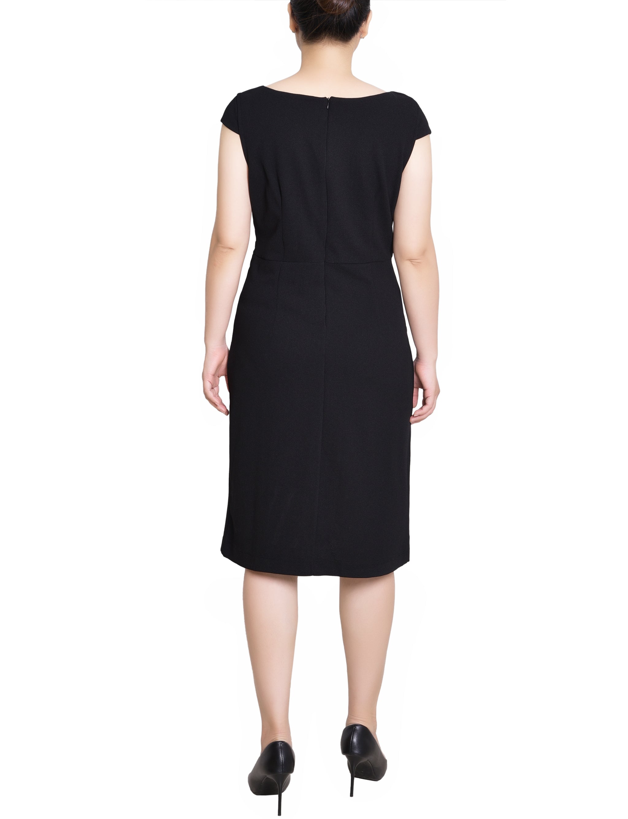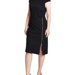 Turn heads in this sleek sheath dress, featuring a flattering square neckline and an edgy front zip slit. Perfect for power moves and stylish nights out.