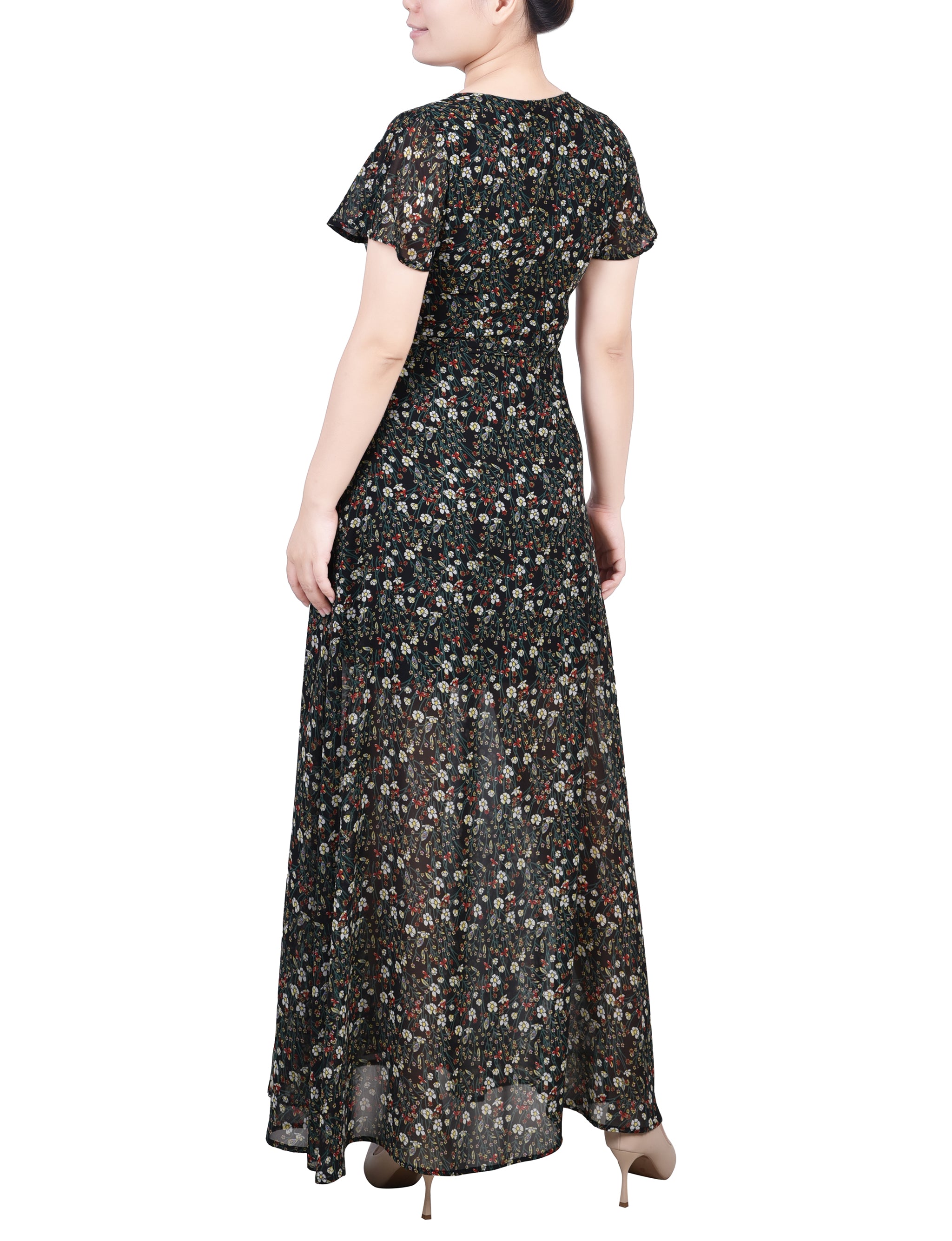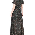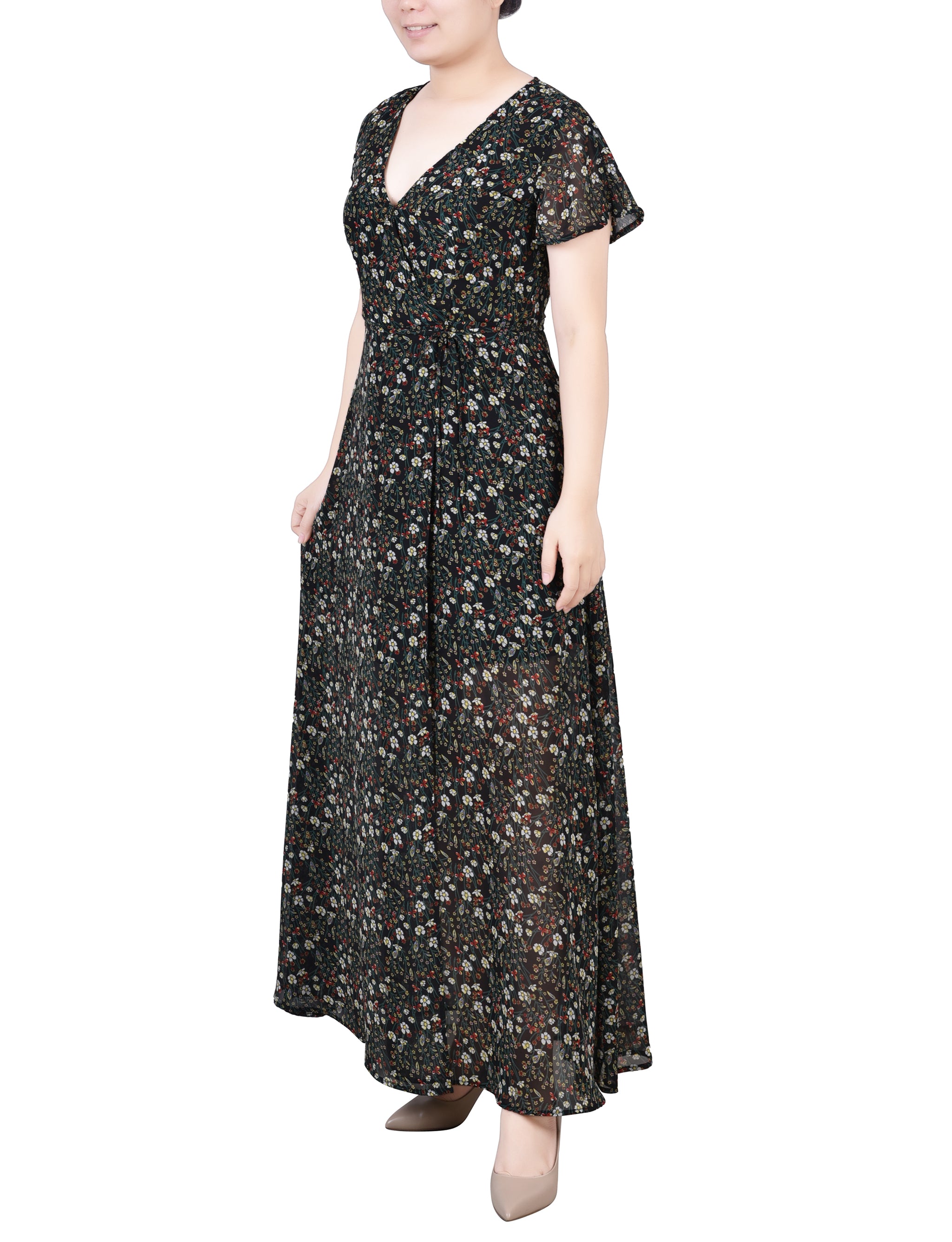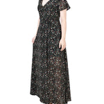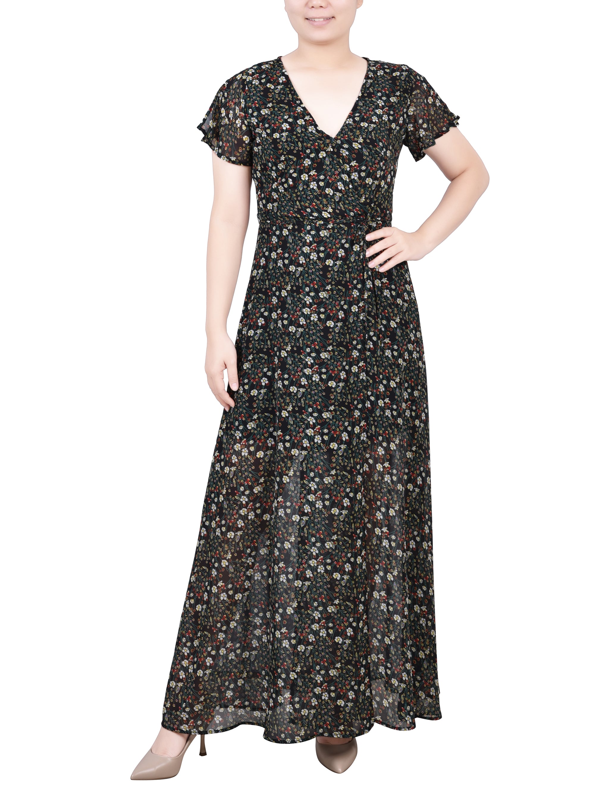 This feminine wrap style chiffon maxi dress, with a tie waist and split sleeve makes the perfect special occasion dress.