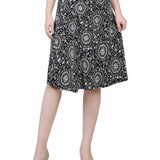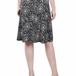 Black Doralflower Wide Waisted Knee Length Skirt - Petite