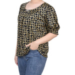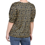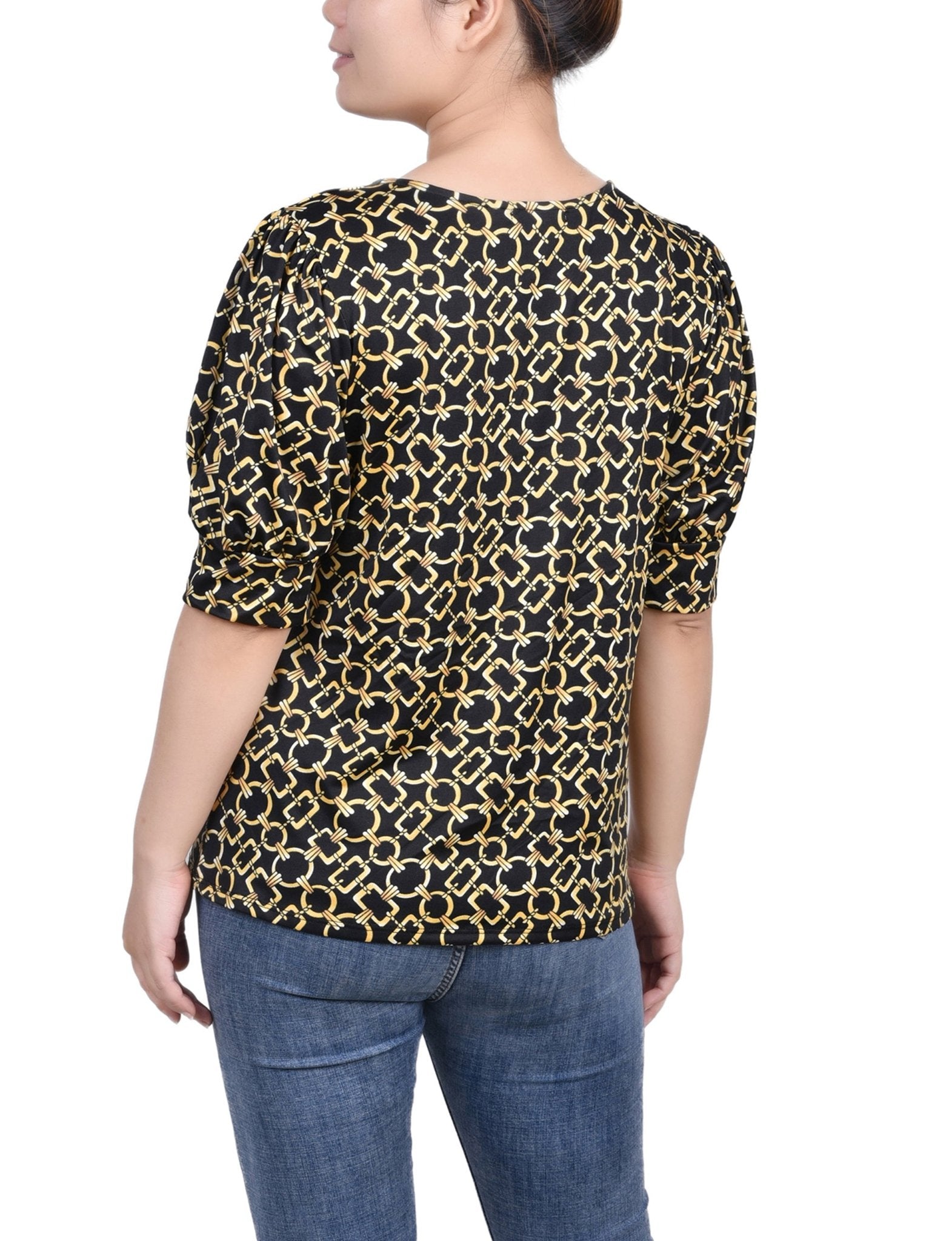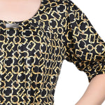 Black Gold Chain Short Sleeve Balloon Sleeve Top - Petite
