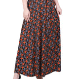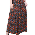 Black Orange Floral Maxi Skirt With Sash Waist Tie - Petite