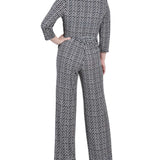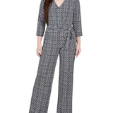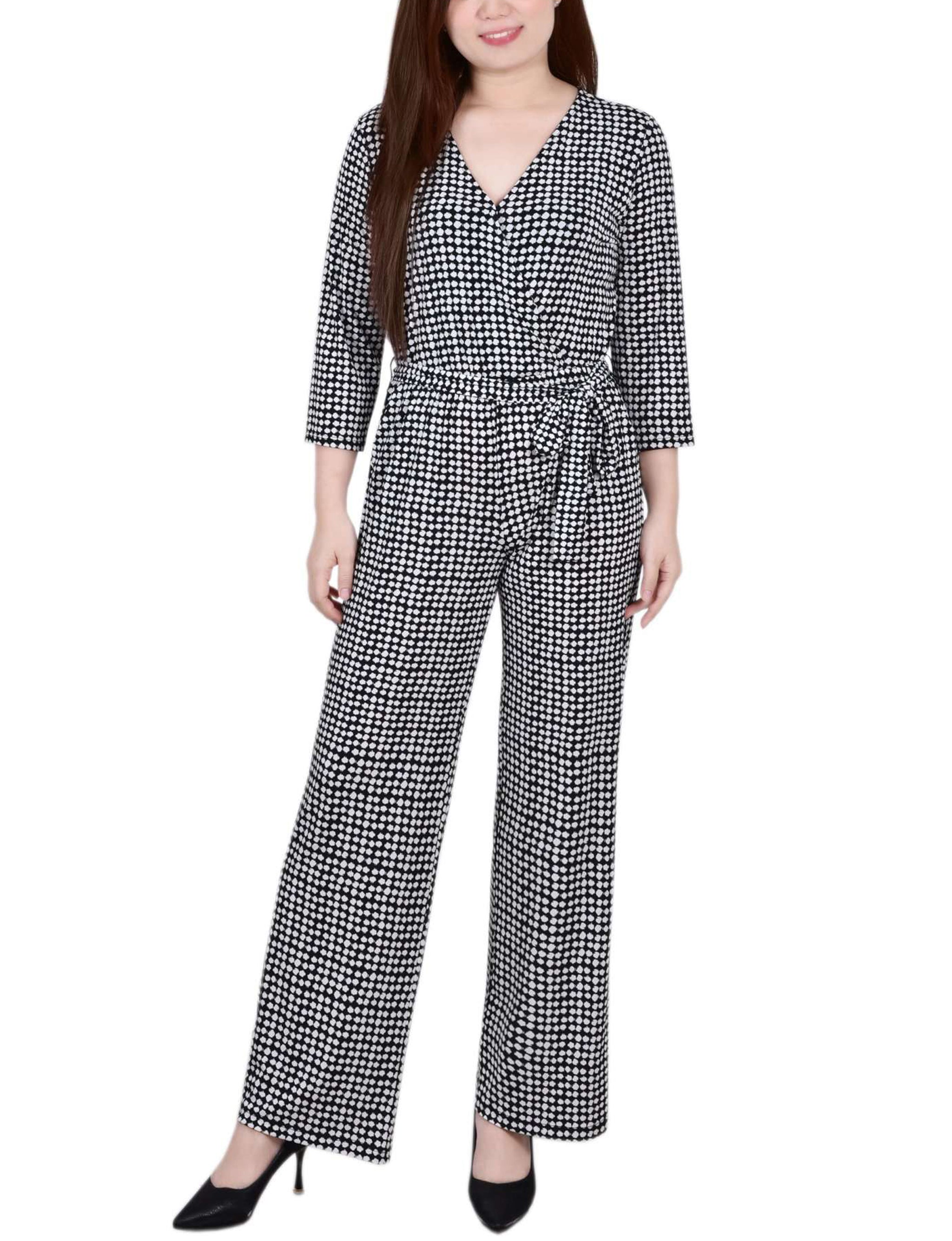 Black Polka Dot 3/4 Sleeve Belted Jumpsuit - Petite – Dressbarn