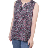Black Red Chervon Sleeveless Pintucked Blouse – Dressbarn