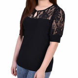 You'll love how you look in this unique top with it's lace yoke and puff sleeves.