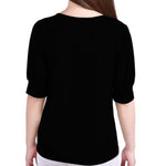 Black Short Sleeve Balloon Sleeve Top With Hardware - Petite