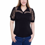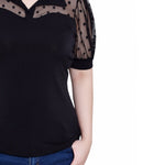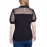 You'll love how you look in this sheer dotted mesh combo top. Pair with pants or dress it up with a skirt.