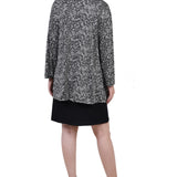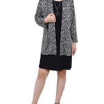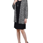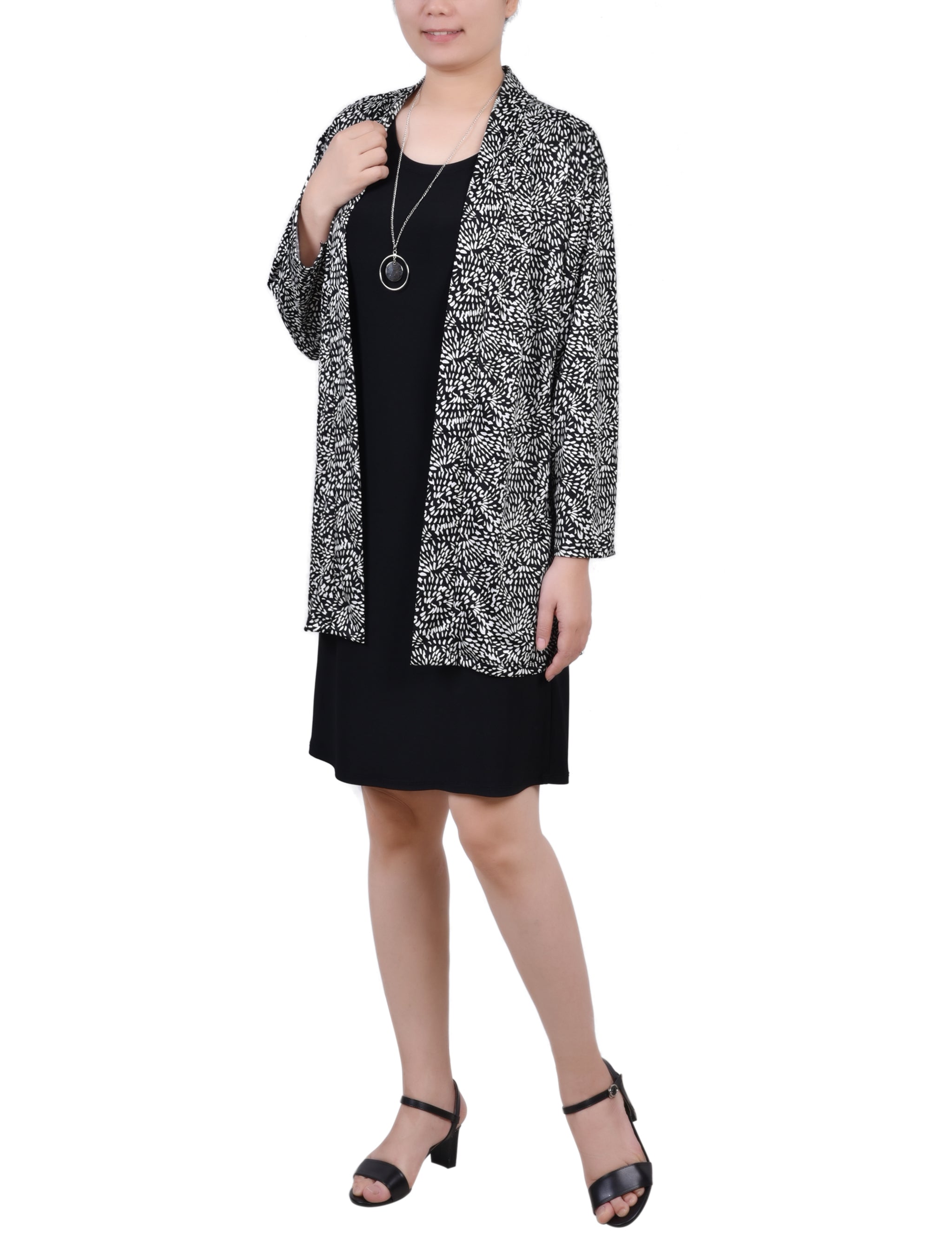 This 2fer dress is so easy to wear with its combo printed jacket and detachable necklace.