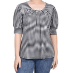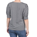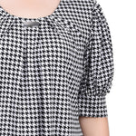 Black White Herringbone Short Sleeve Balloon Sleeve Top - Petite