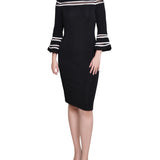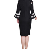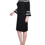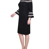 Black White Long Bell Sleeve Dress With Contrast Striping