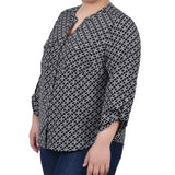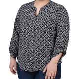 Black White Rope Iconic 3/4 Roll Tab Sleeve Mandarin Collar Blouse - P – Dressbarn