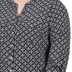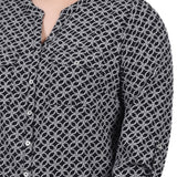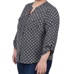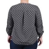 Black White Rope Iconic 3/4 Roll Tab Sleeve Mandarin Collar Blouse - Plus Size