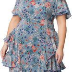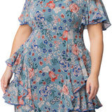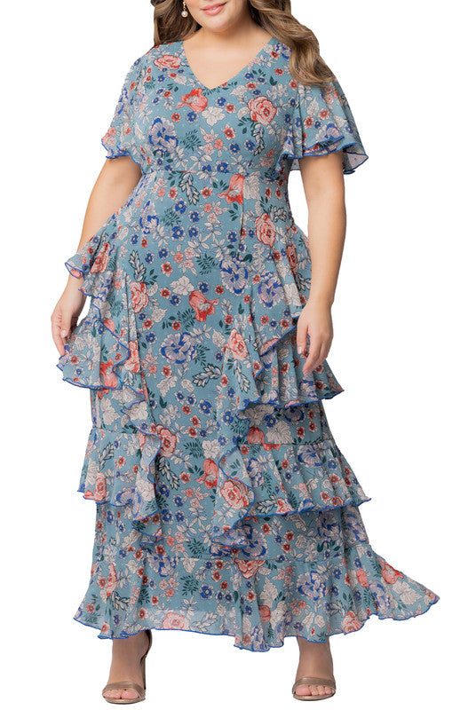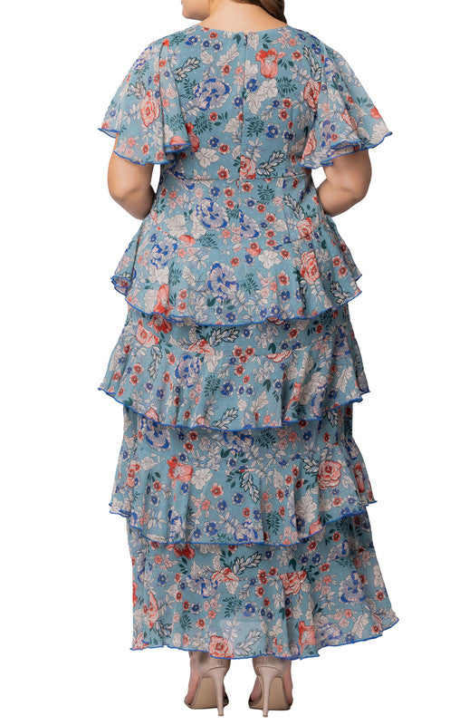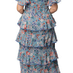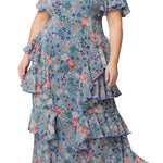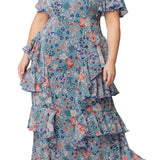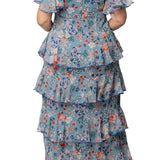 Blue Garden Print Tour de Flounce Chiffon Gown - Plus