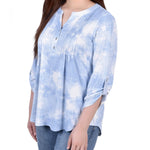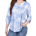 Perfect for the office or a day of errands, this comfortable and cute top has roll tab sleeve accent and a Y-neckline.