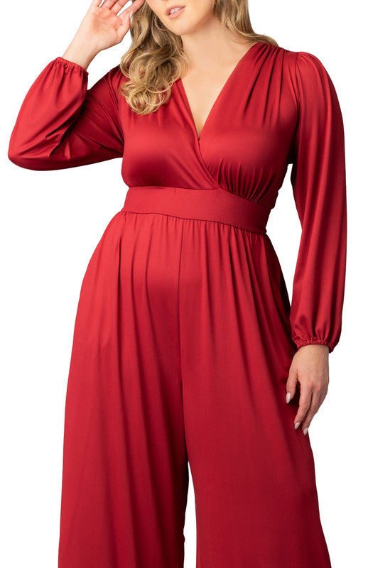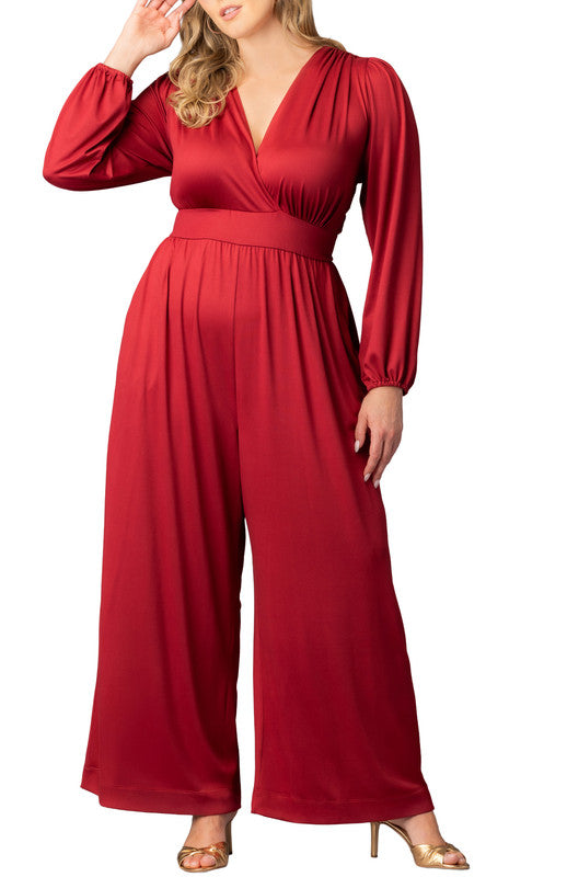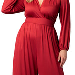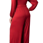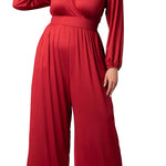 Brigitte Long Sleeve Jumpsuit - Red - Plus