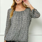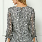 Refresh your wardrobe with the effortless elegance of the bubble hem sleeve blouse. Designed in a soft cream base with black accents, this versatile top combines timeless sophistication with modern detail.