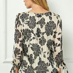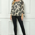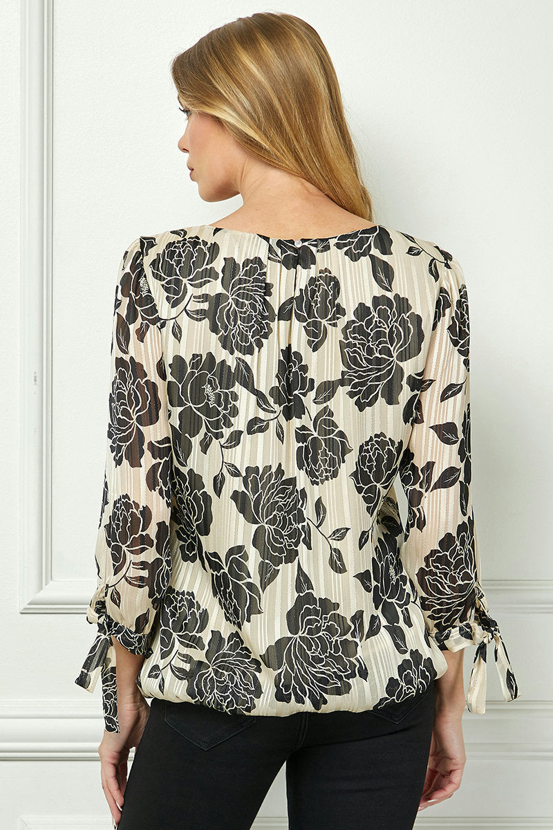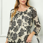 Elevate your everyday wardrobe with this chic bubble hem blouse, designed to deliver both style and comfort. The relaxed bubble hemline creates a flattering silhouette that skims effortlessly over the body, while the 3/4 sleeves with tie accents add a feminine touch of detail.