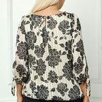 Bubble Hem 3/4 Tie Sleeve Blouse in Beige - Plus