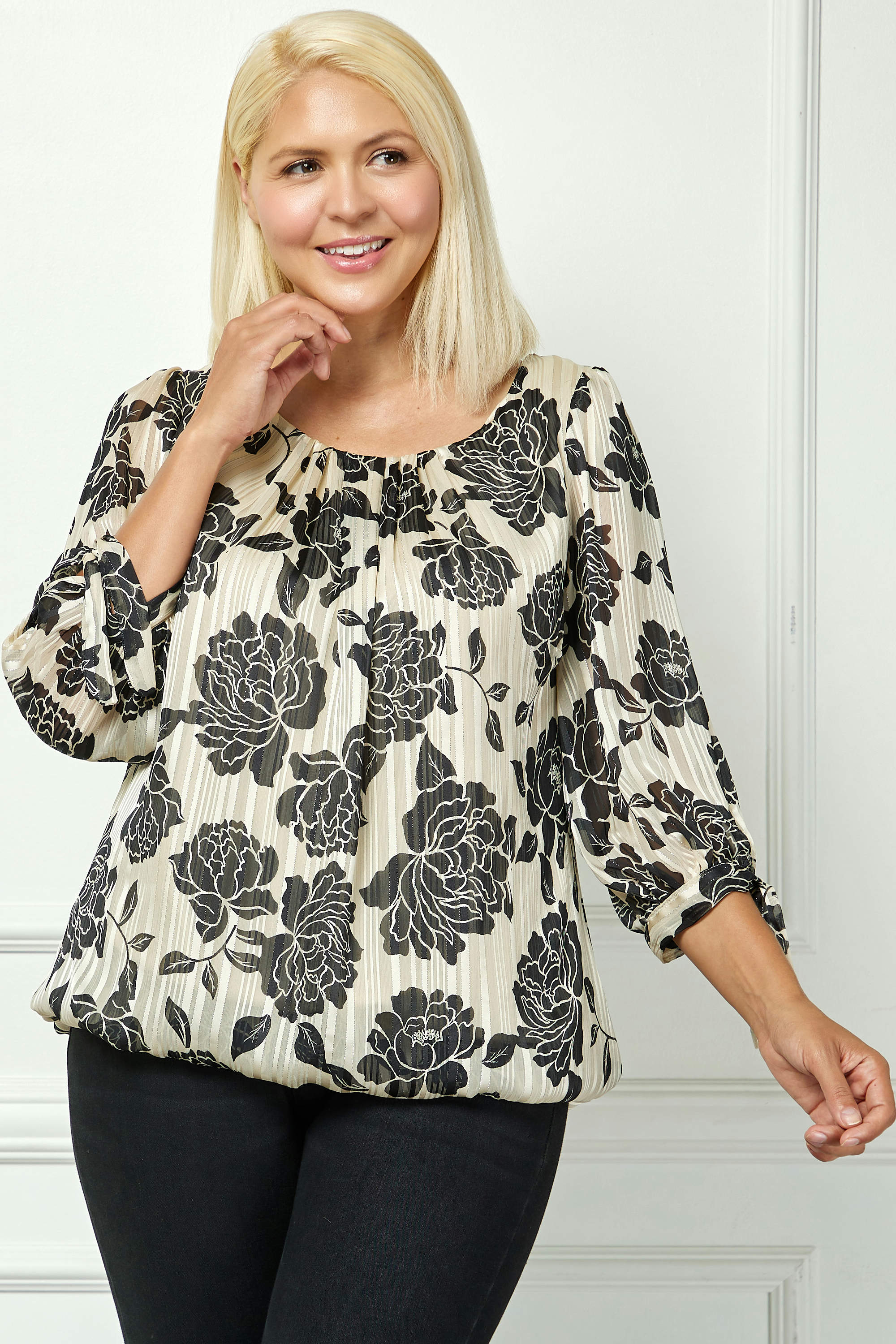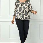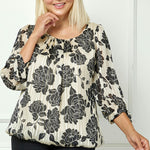 Elevate your everyday wardrobe with this chic bubble hem blouse, designed to deliver both style and comfort. The relaxed bubble hemline creates a flattering silhouette that skims effortlessly over the body, while the 3/4 sleeves with tie accents add a feminine touch of detail.