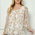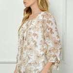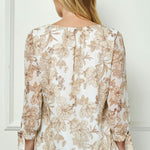 Bubble Hem 3/4 Tie Sleeve Blouse - Ivory/Tan