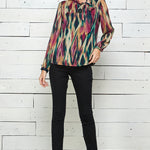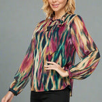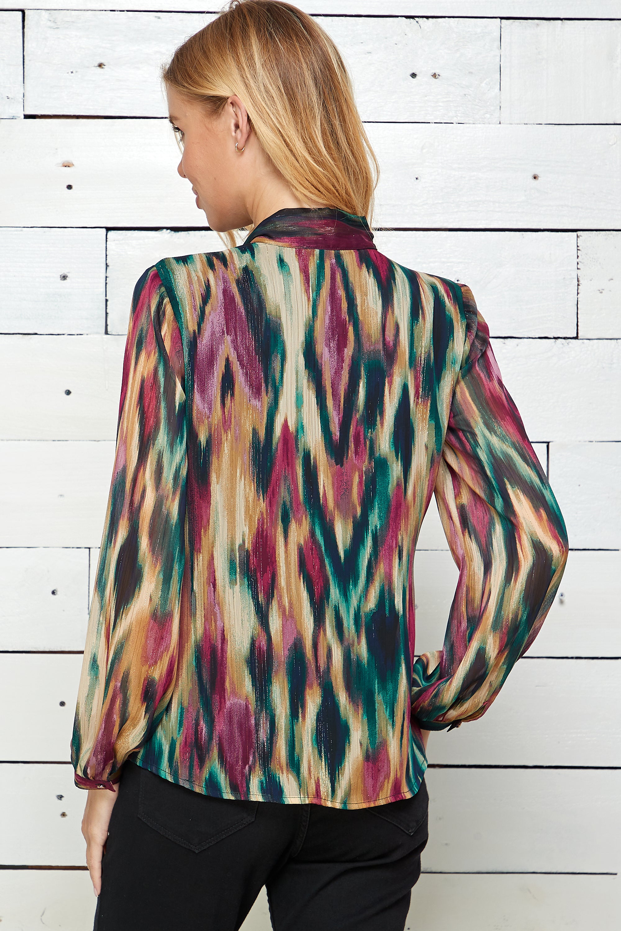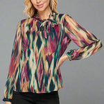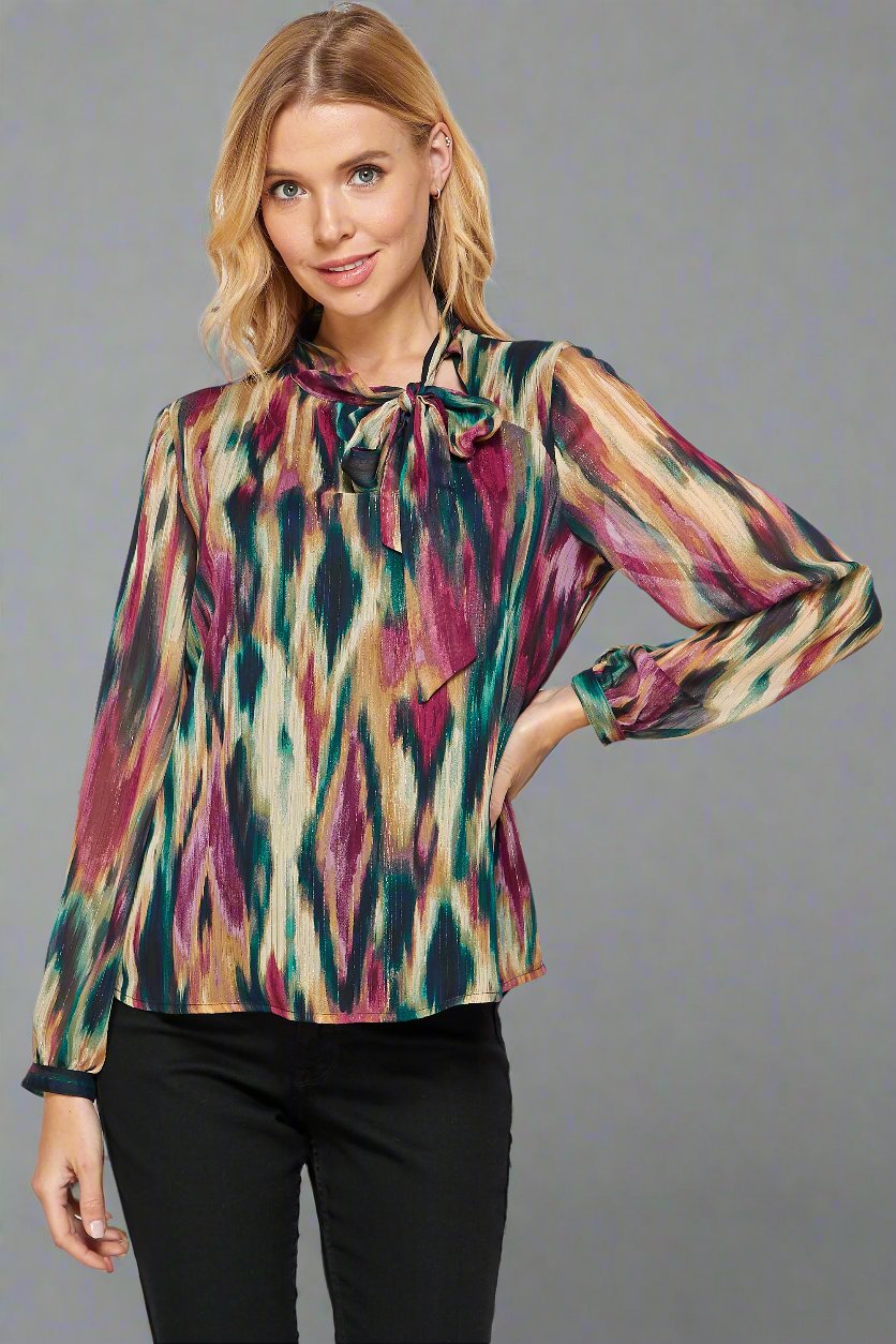 Burgundy Long Sleeve Side-Tie Neck Blouse