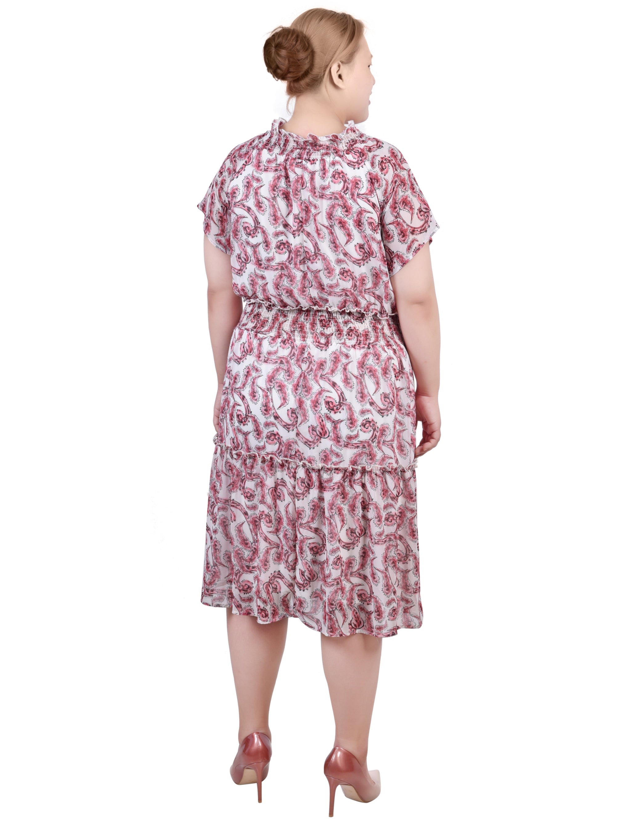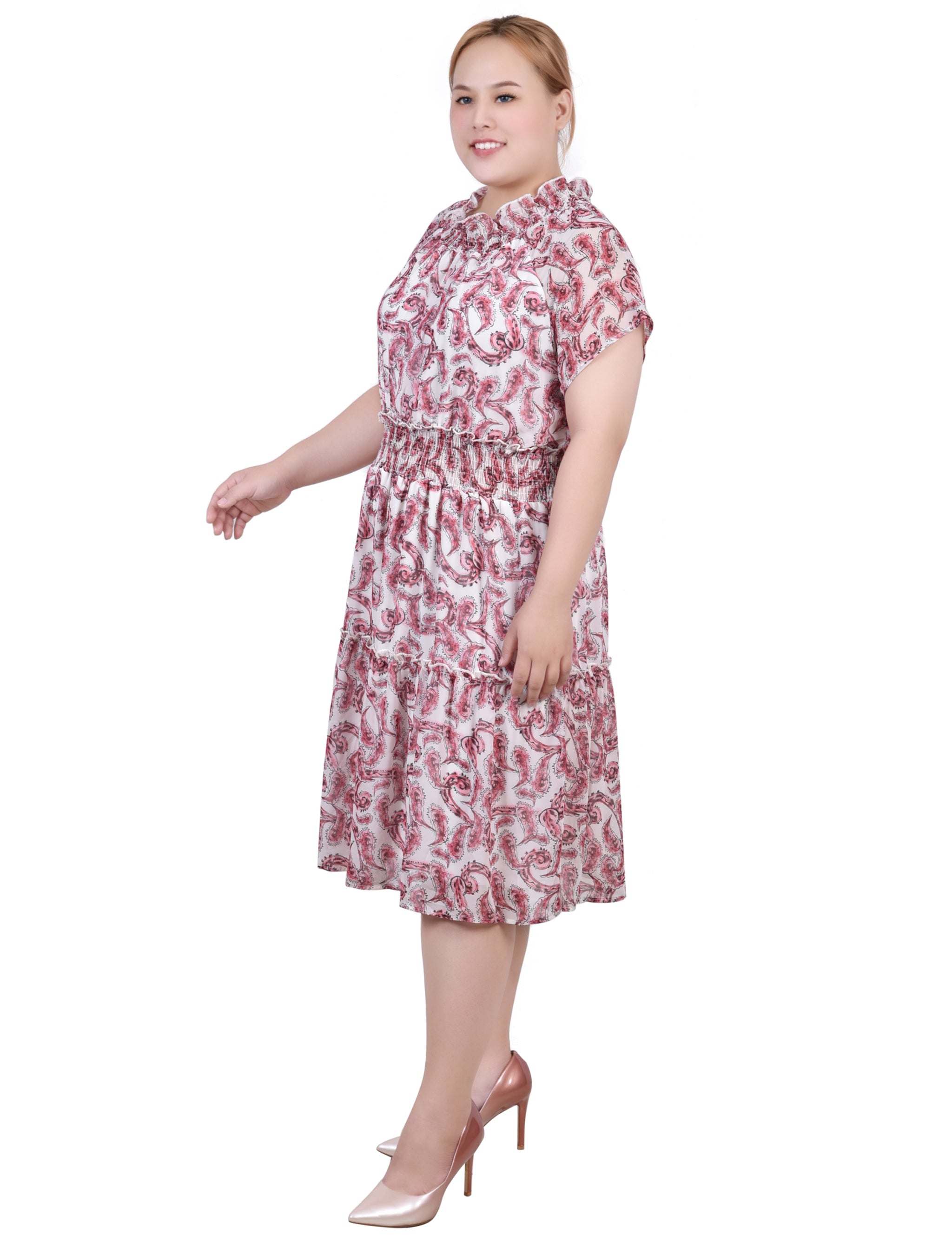 With ruffled neck and smocked waist, this dress is perfect for office days and cocktail parties alike.