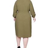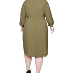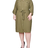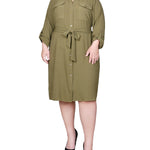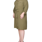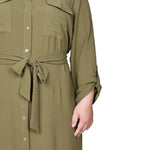 You'll always be in style with this classic shirt-dress with its full button front and self belt.
