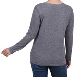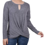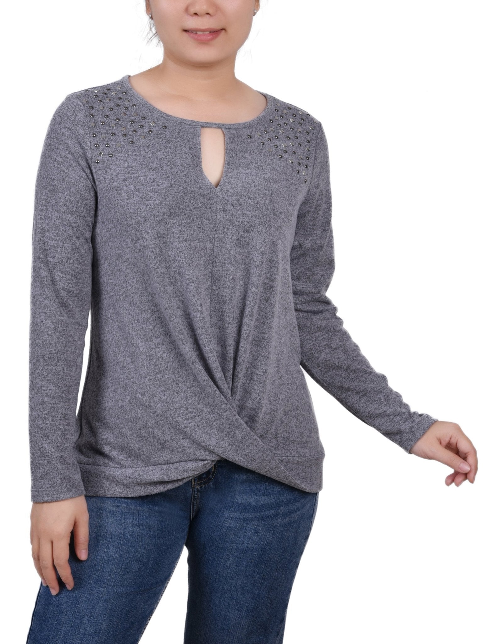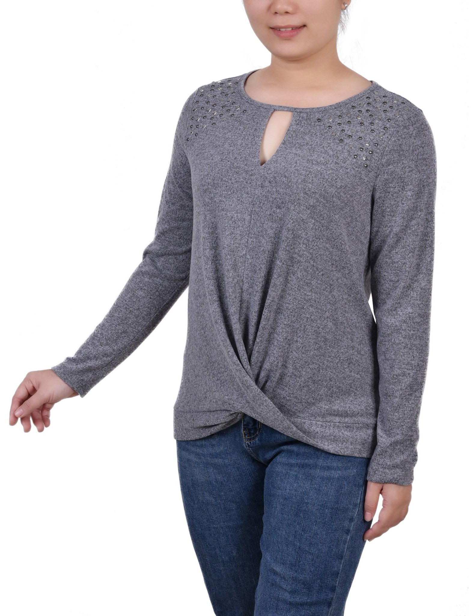 Charcoal Long Sleeve Knit Keyhole Top With Studs - Petite – Dressbarn