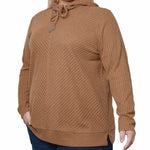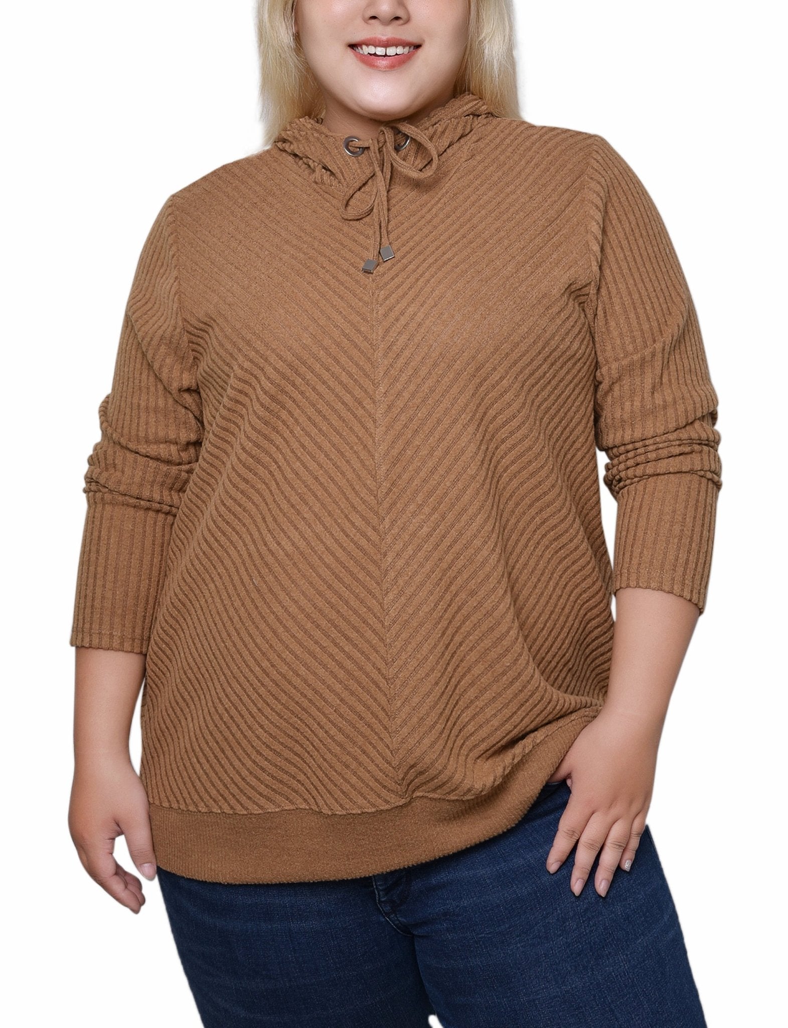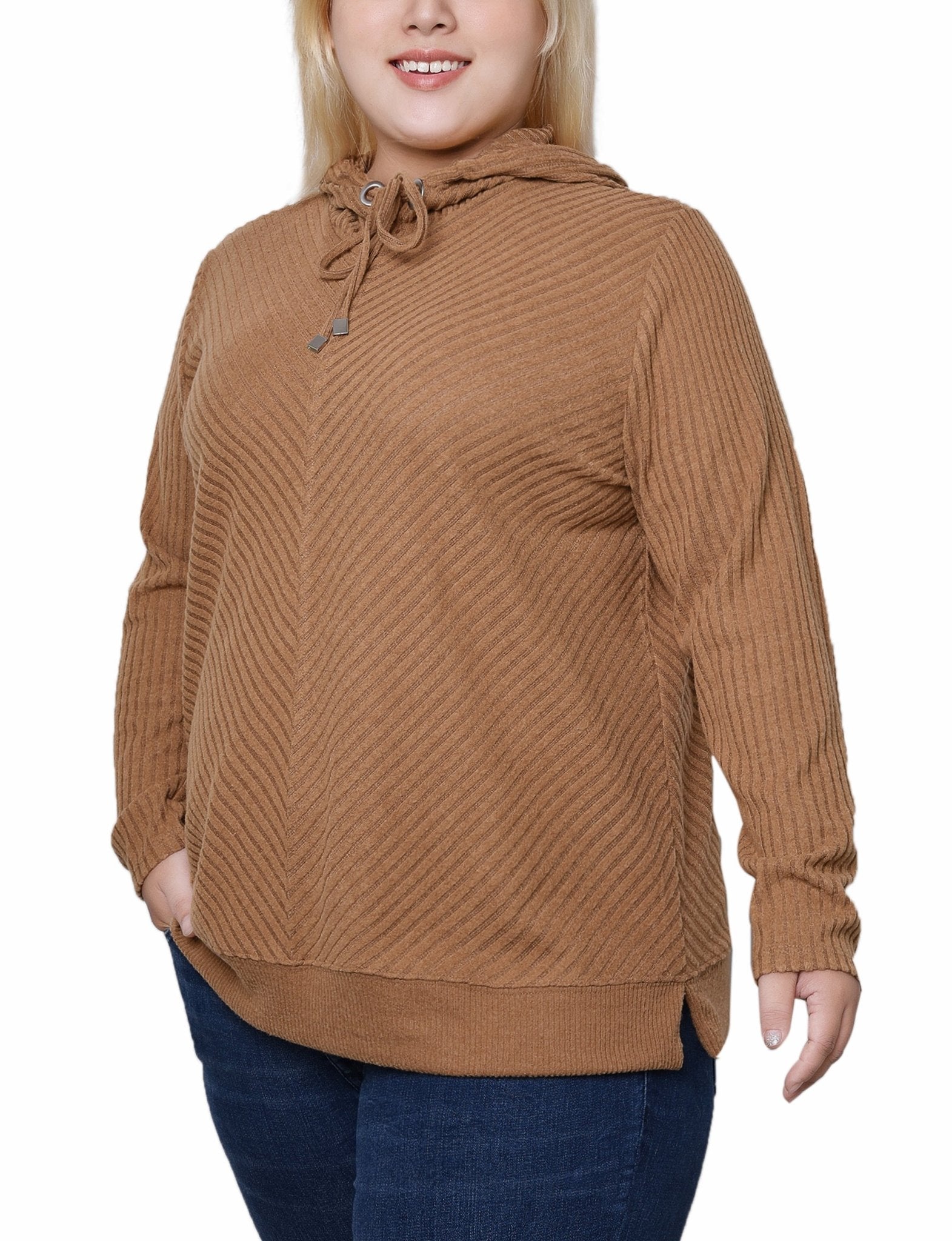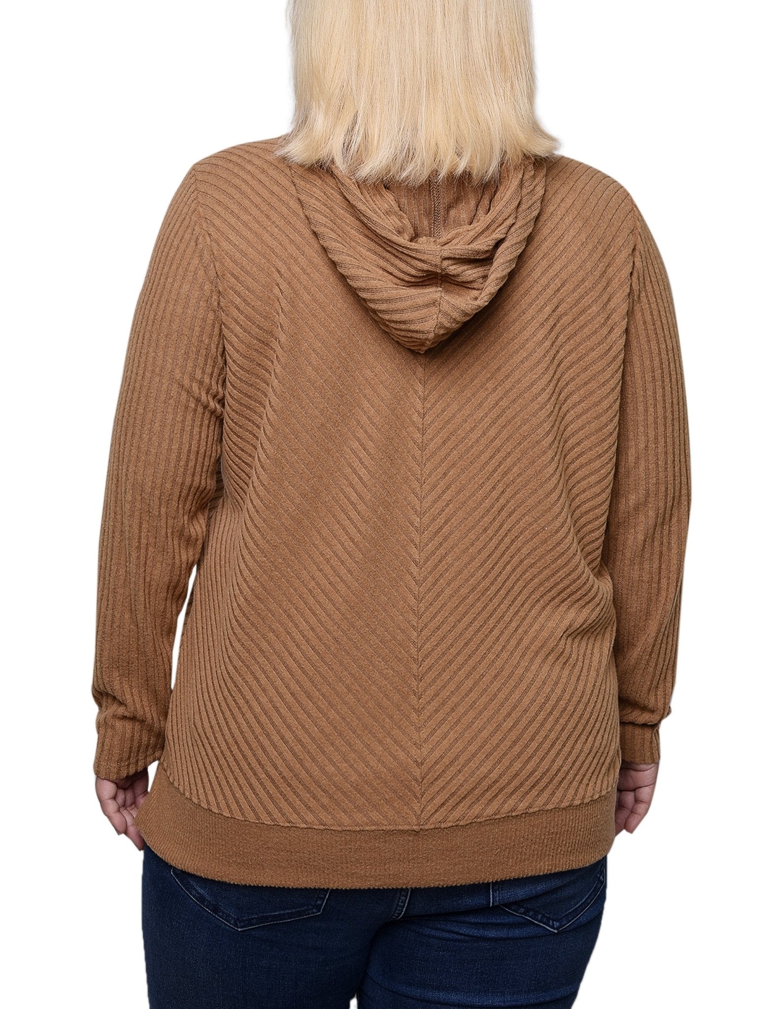 Cozy up in the cold this season with this ribbed hoodie with banded bottom.