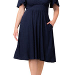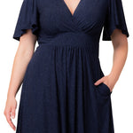 You'll dazzle the eyes in the plus size Crystal Cove Cocktail Dress. This glittering A-line cocktail dress is designed with a surplice bodice, short dolman sleeves, and pockets.