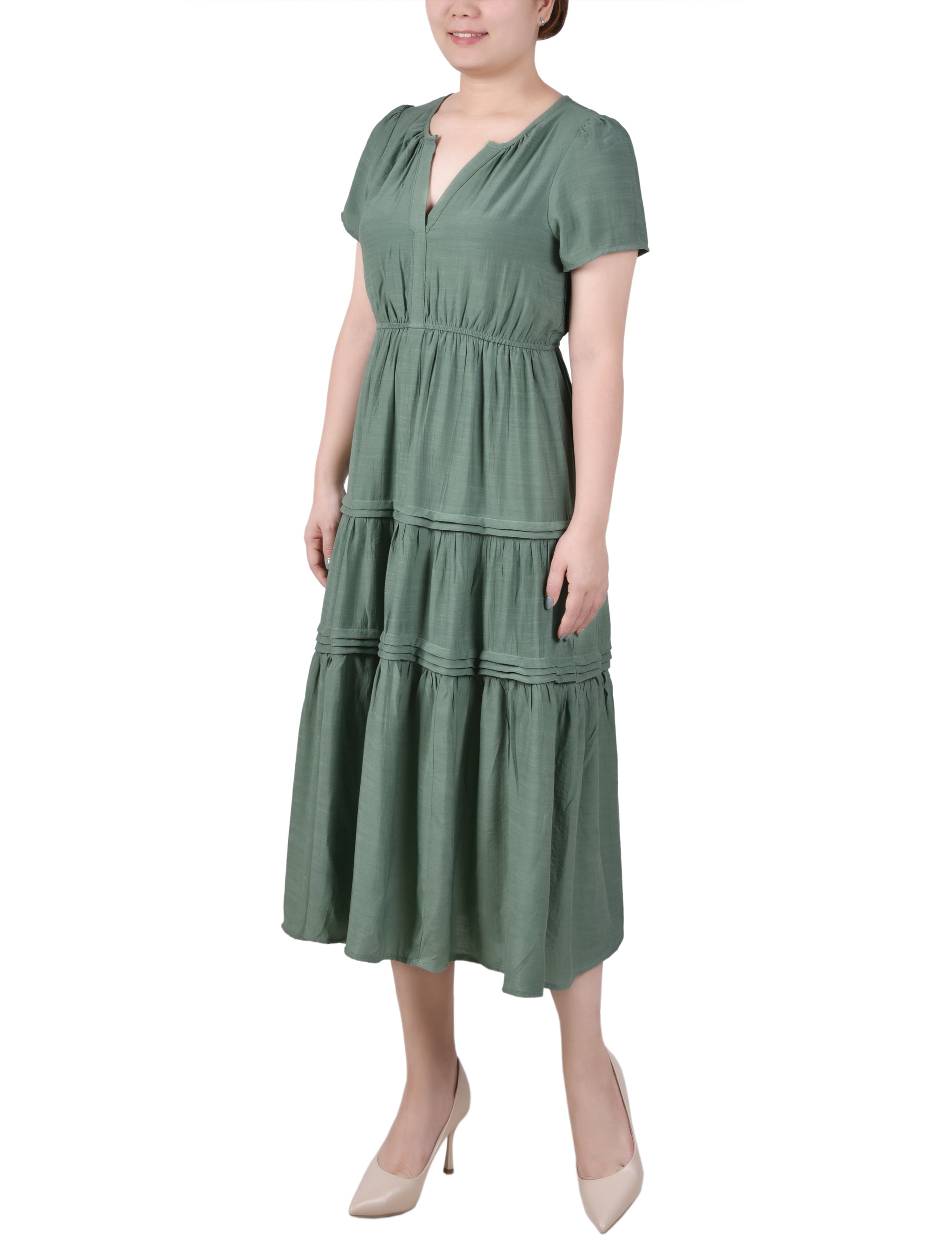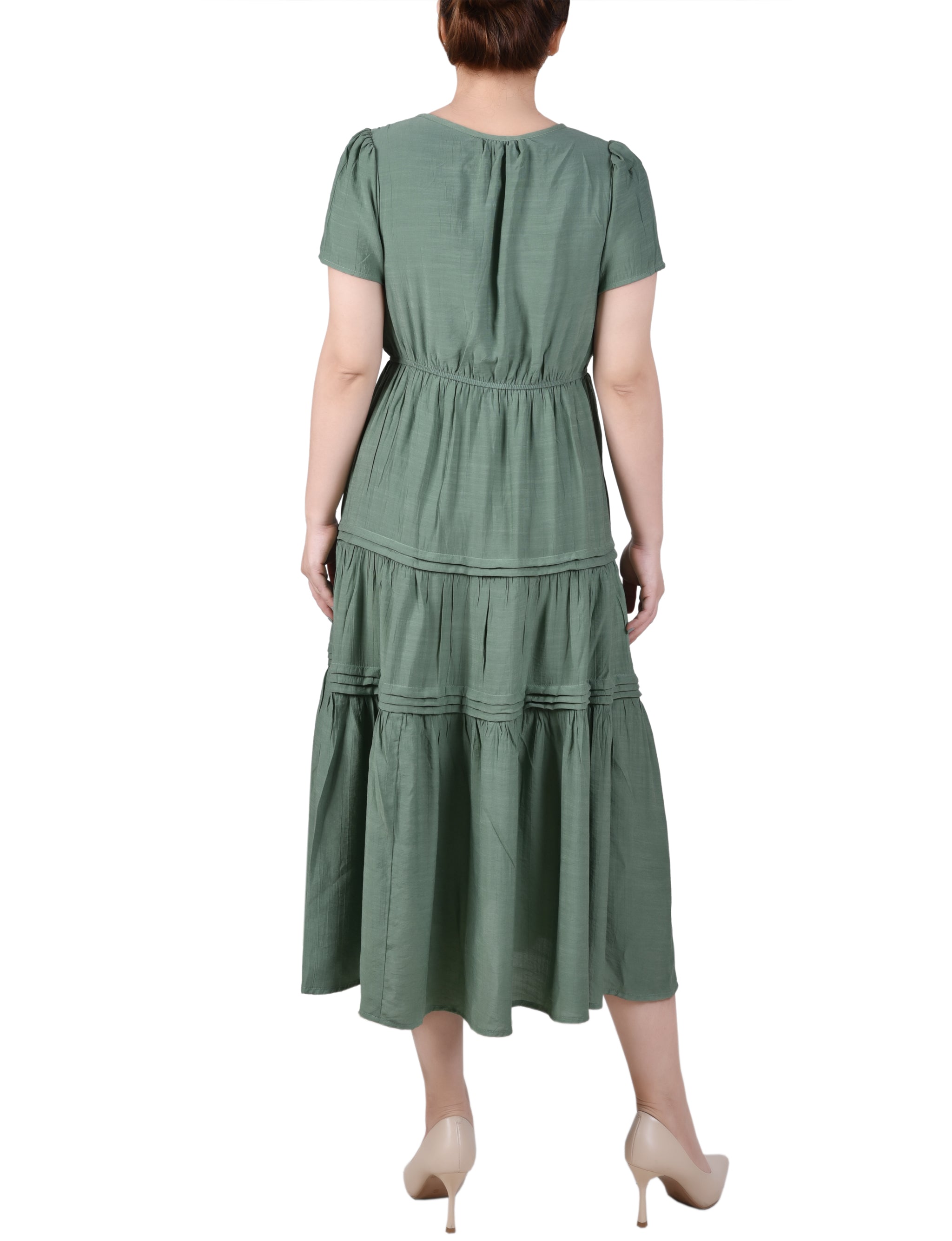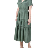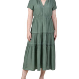 This carefree ankle-length dress will get you through the season in style. The elastic waist and wide flounce are so easy to wear.