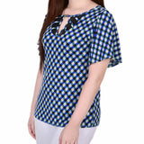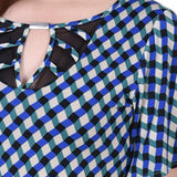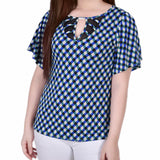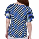 Mesh neckline and flutter sleeves make this top a standout style for the upcoming season.