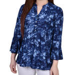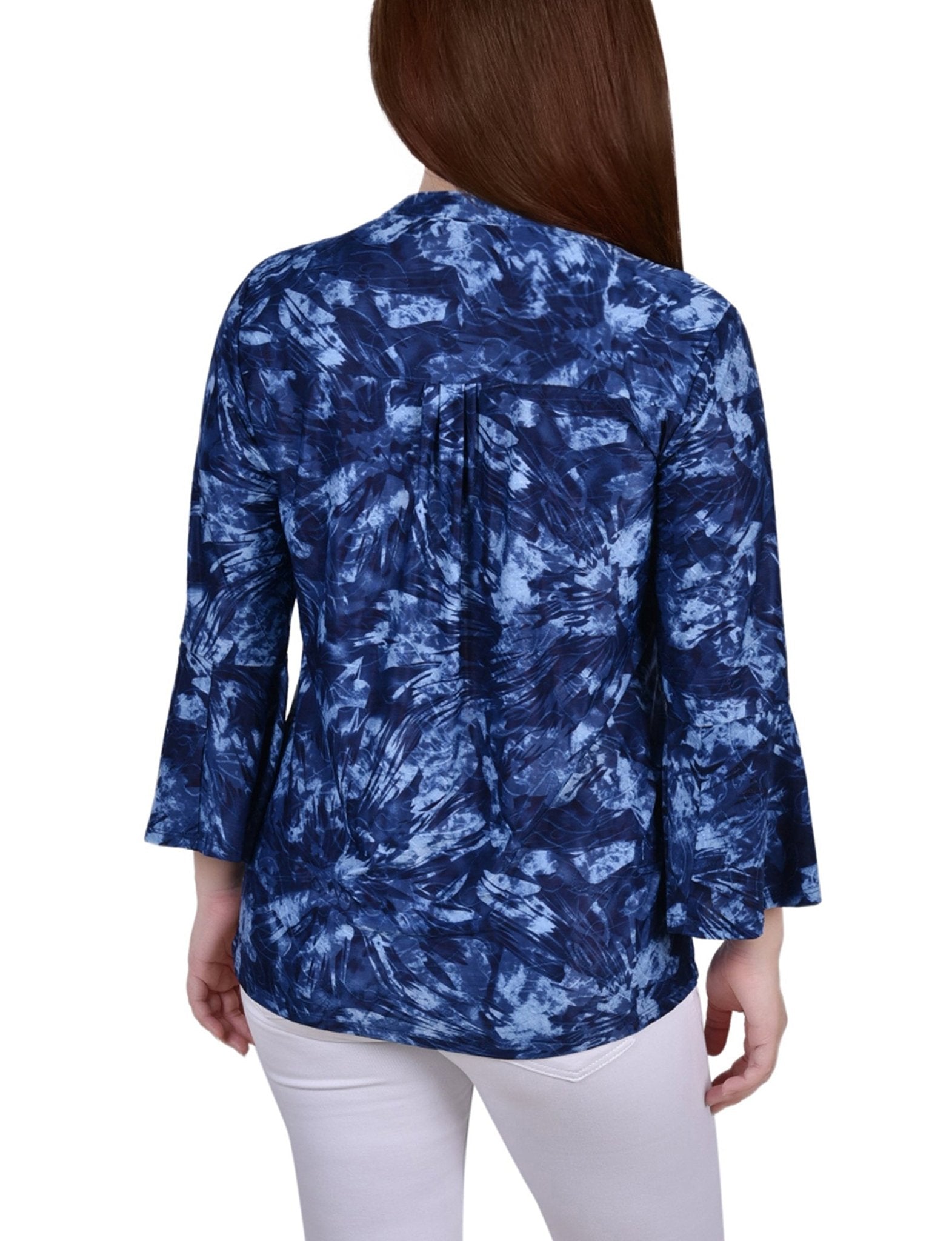 You'll stand out in a crowd in this bell sleeve popover top.