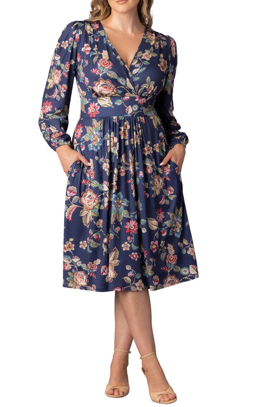 The Plus Size Diana Long Sleeve Midi Dress is your go-to for chic, versatile style. Made from a comfortable stretch fabric, this A-line dress features a flattering surplice V neckline, long gathered sleeves, and a defined waistband that enhances your curves. The knee-length design, complete with convenient pockets, combines style and practicality. Perfect for work, day events, or evening occasions, this dress transitions effortlessly from desk to dinner.