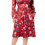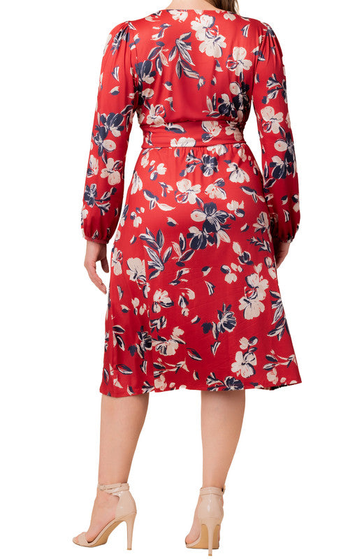Diana Long Sleeve Midi Dress - Red Floral - Plus