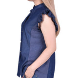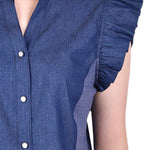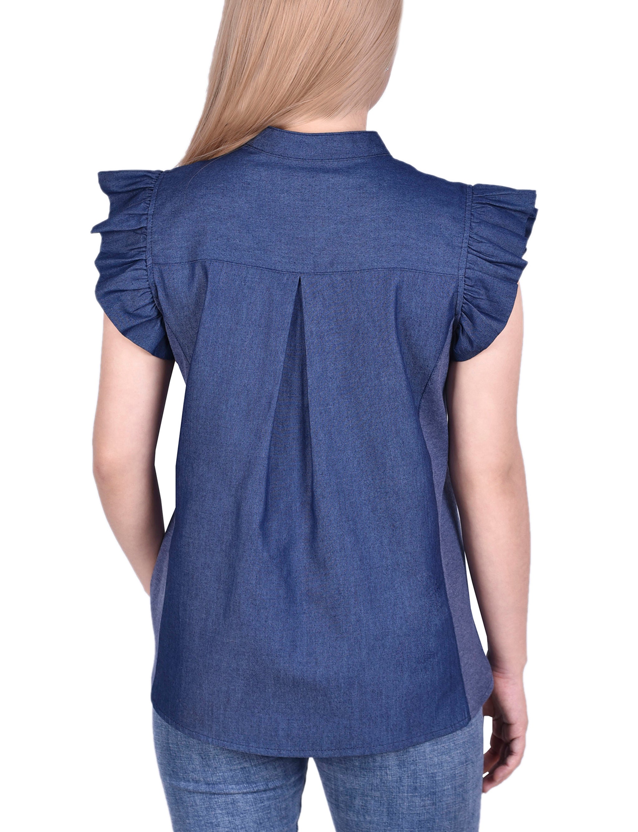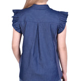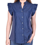 Stand out from the crowd in this denim top with short flared sleeves and a button up detail.