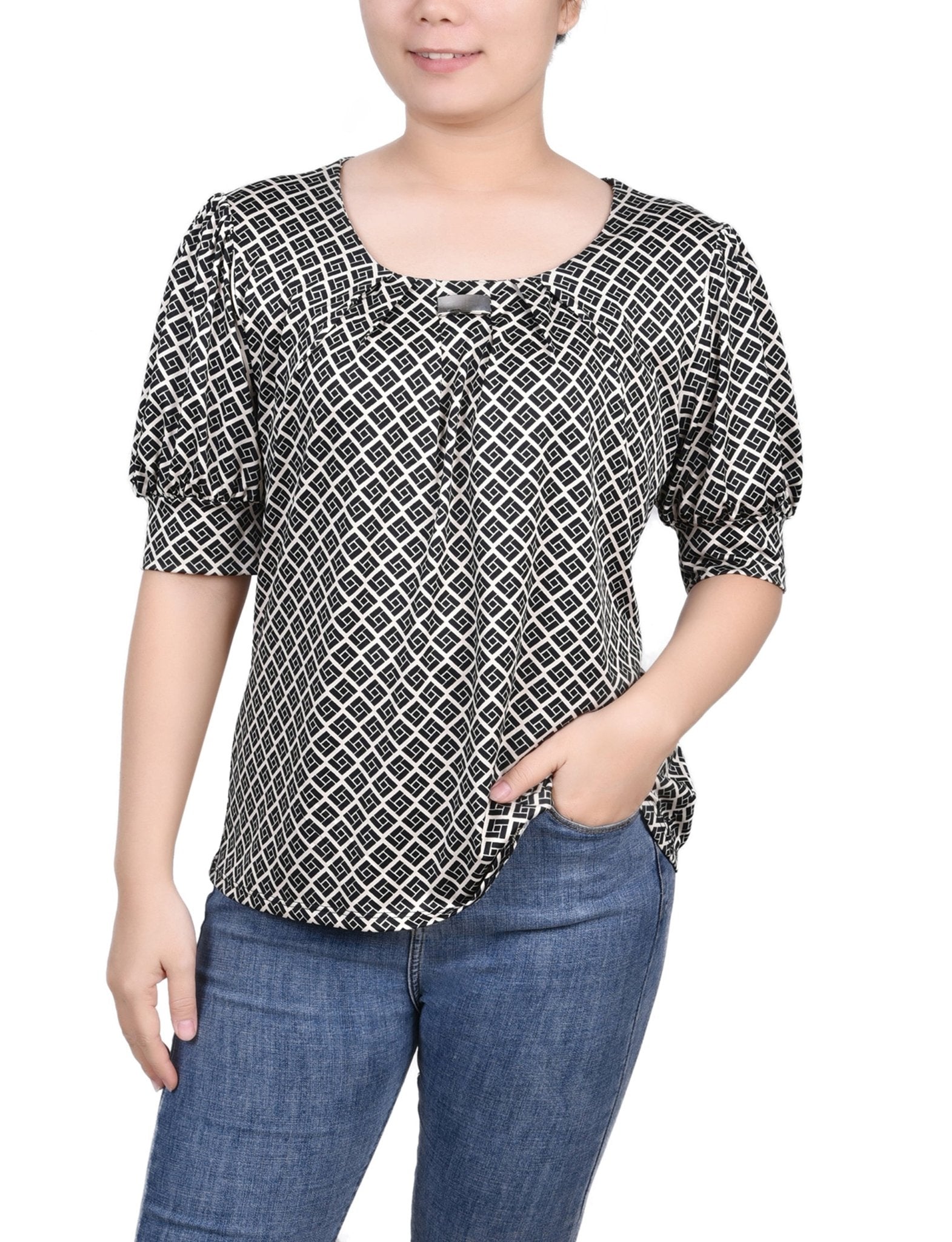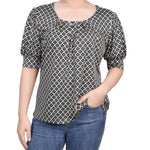 Doeskin Black Allie Short Sleeve Balloon Sleeve Top - Petite