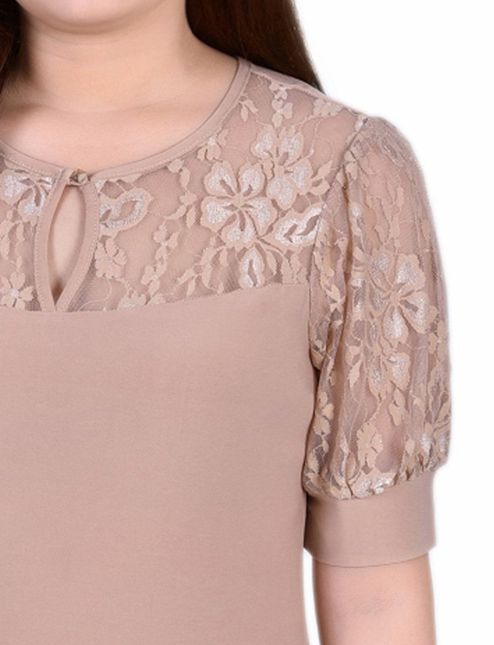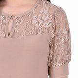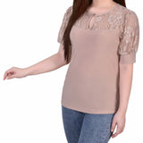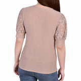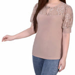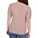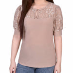 You'll love how you look in this unique top with it's lace yoke and puff sleeves.