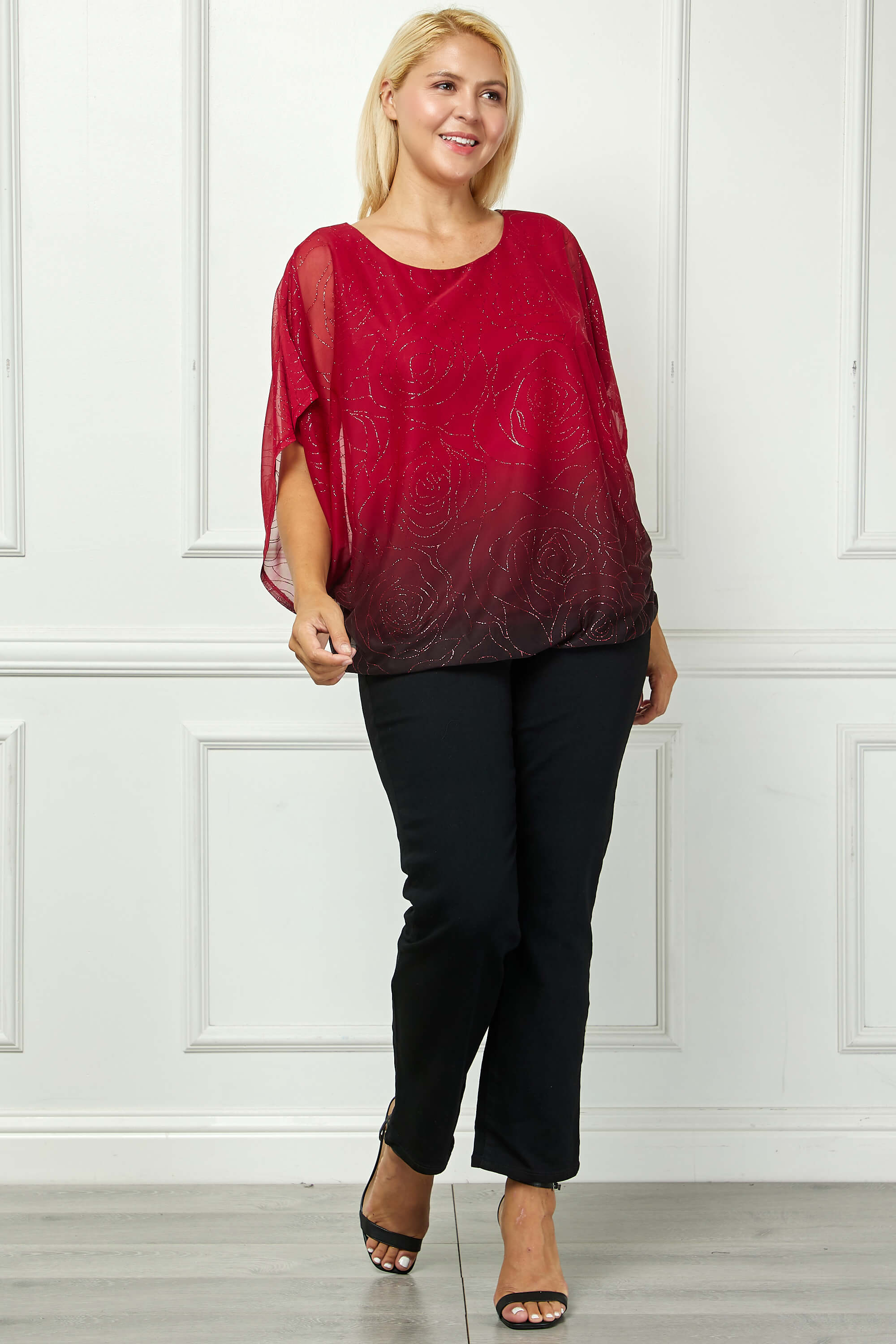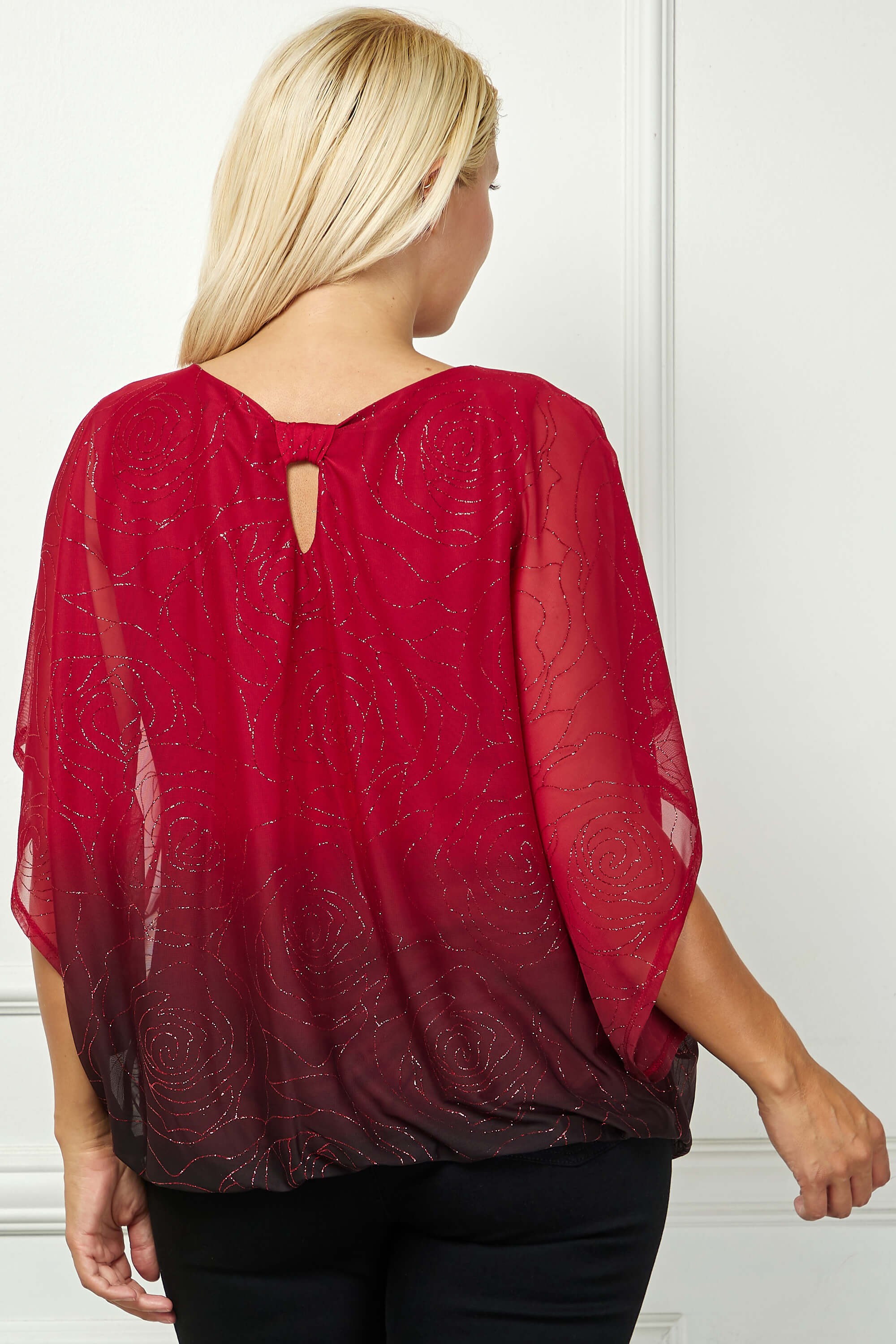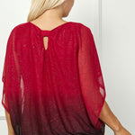 Elbow Sleeve Poncho Cutout Knot Back Bubble Blouse in Red - Plus
