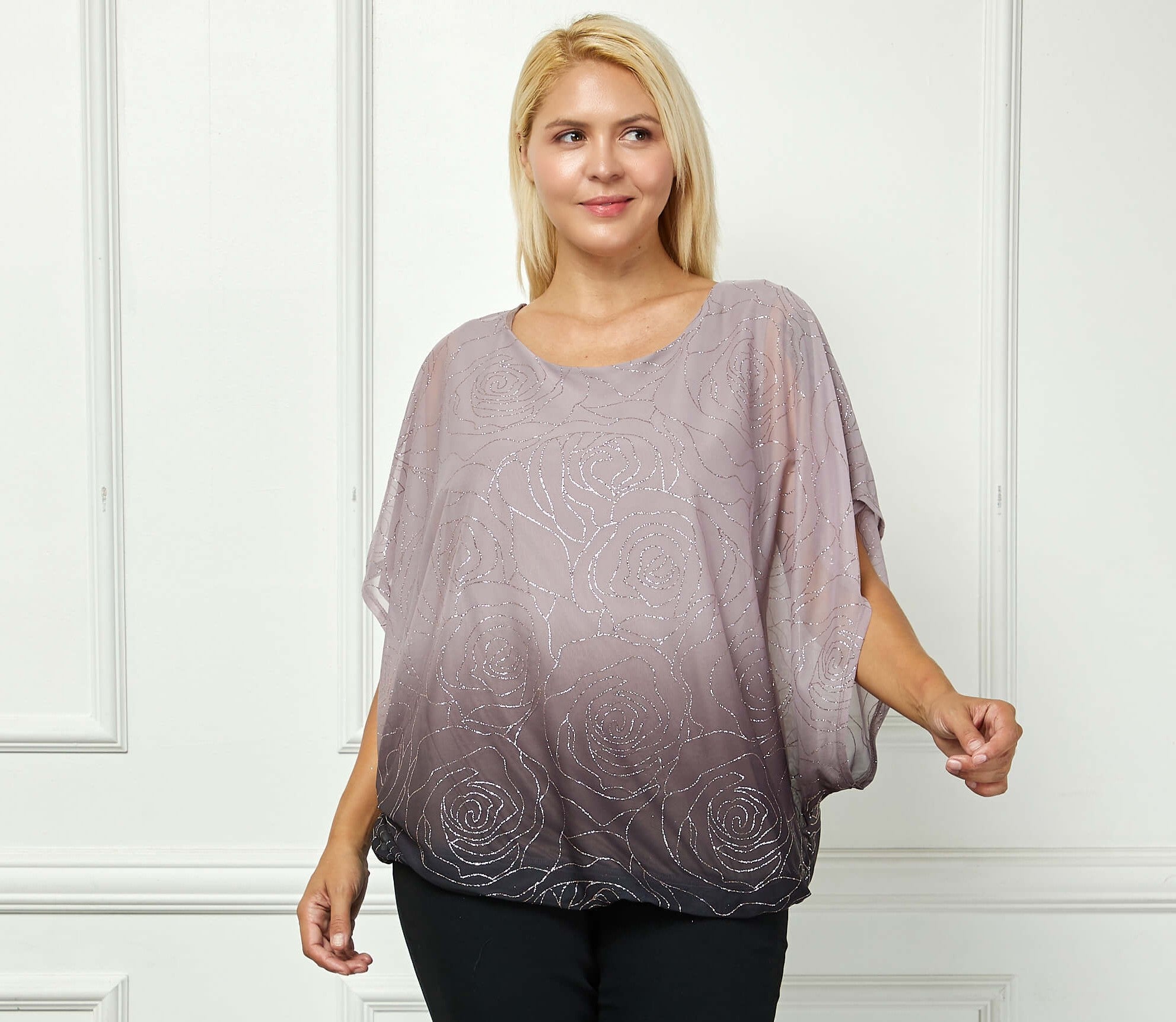 Elegant and airy, this blouse offers a perfect balance of flow and sophistication. The poncho-style overlay drapes effortlessly, creating a soft, flattering silhouette that moves beautifully with every step.